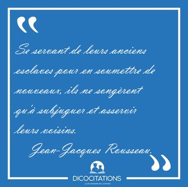![Se servant de leurs anciens esclaves pour en soumettre de [...] - Jean-Jacques Rousseau... Se servant de leurs anciens esclaves pour en soumettre de [...] - Jean-Jacques Rousseau...](/imagescitations/Se_servant_de_leurs_anciens_esclaves_pour_en_soumettre_de_-_Jean-Jacques_Rousseau-66233.jpg)