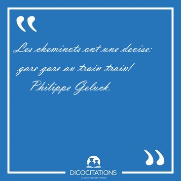 ![Les cheminots ont une devise: gare gare au [...] - Philippe Geluck... Les cheminots ont une devise: gare gare au [...] - Philippe Geluck...](/imagescitations/Les_cheminots_ont_une_devise_gare_gare_au_-_Philippe_Geluck-66545.jpg)