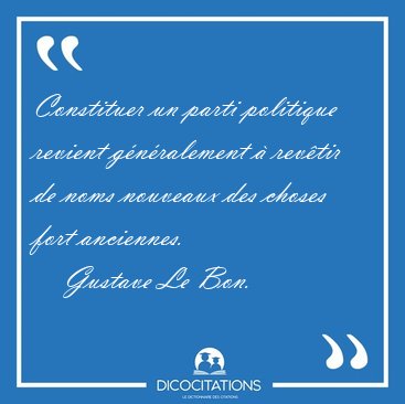 ![Constituer un parti politique revient généralement à revêtir de [...] - Gustave Le Bon... Constituer un parti politique revient généralement à revêtir de [...] - Gustave Le Bon...](/imagescitations/Constituer_un_parti_politique_revient_generalement_a_revetir_de_-_Gustave_Le_Bon-66605.jpg)