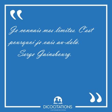 ![Je connais mes limites. C'est pourquoi je vais [...] - Serge Gainsbourg... Je connais mes limites. C'est pourquoi je vais [...] - Serge Gainsbourg...](/imagescitations/Je_connais_mes_limites_C_est_pourquoi_je_vais_-_Serge_Gainsbourg-6686.jpg)