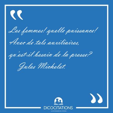 ![Les femmes! quelle puissance! Avec de tels auxiliaires, [...] - Jules Michelet... Les femmes! quelle puissance! Avec de tels auxiliaires, [...] - Jules Michelet...](/imagescitations/Les_femmes_quelle_puissance_Avec_de_tels_auxiliaires_-_Jules_Michelet-67314.jpg)