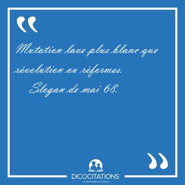 ![Mutation lave plus blanc que révolution ou [...] - Slogan de mai 68... Mutation lave plus blanc que révolution ou [...] - Slogan de mai 68...](/imagescitations/Mutation_lave_plus_blanc_que_revolution_ou_-_Slogan_de_mai_68-67436.jpg)