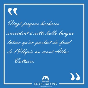 ![Vingt jargons barbares succèdent à cette belle langue latine [...] - Voltaire... Vingt jargons barbares succèdent à cette belle langue latine [...] - Voltaire...](/imagescitations/Vingt_jargons_barbares_succedent_a_cette_belle_langue_latine_-_Voltaire-67944.jpg)