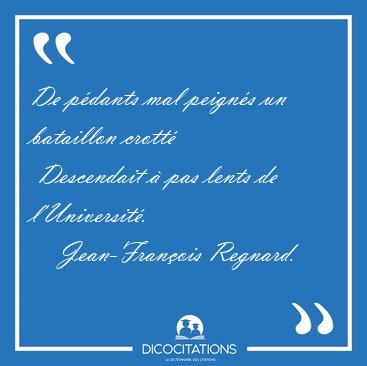 ![De pédants mal peignés un bataillon crotté Descendait à pas [...] - Jean-François Regnard... De pédants mal peignés un bataillon crotté Descendait à pas [...] - Jean-François Regnard...](/imagescitations/De_pedants_mal_peignes_un_bataillon_crotte_Descendait_a_pas_-_Jean-Francois_Regnard-68174.jpg)