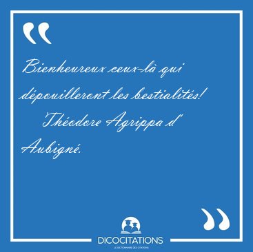 Bienheureux ceux-là qui dépouilleront les bestialités!