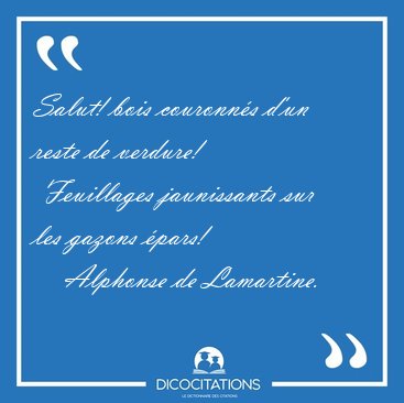 ![Salut! bois couronnés d'un reste de verdure! Feuillages [...] - Alphonse de Lamartine... Salut! bois couronnés d'un reste de verdure! Feuillages [...] - Alphonse de Lamartine...](/imagescitations/Salut_bois_couronnes_d_un_reste_de_verdure_Feuillages_-_Alphonse_de_Lamartine-68999.jpg)