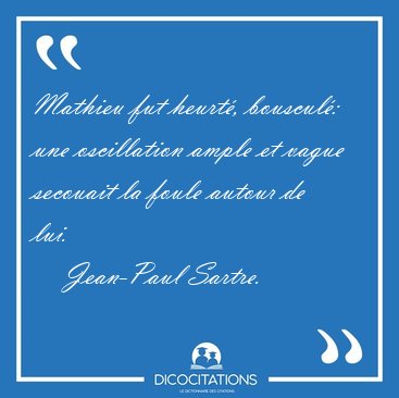 ![Mathieu fut heurté, bousculé: une oscillation ample et vague [...] - Jean-Paul Sartre... Mathieu fut heurté, bousculé: une oscillation ample et vague [...] - Jean-Paul Sartre...](/imagescitations/Mathieu_fut_heurte_bouscule_une_oscillation_ample_et_vague_-_Jean-Paul_Sartre-69346.jpg)