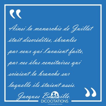 ![Ainsi la monarchie de Juillet était discréditée, ébranlée par [...] - Jacques Bainville... Ainsi la monarchie de Juillet était discréditée, ébranlée par [...] - Jacques Bainville...](/imagescitations/Ainsi_la_monarchie_de_Juillet_etait_discreditee_ebranlee_par_-_Jacques_Bainville-69419.jpg)