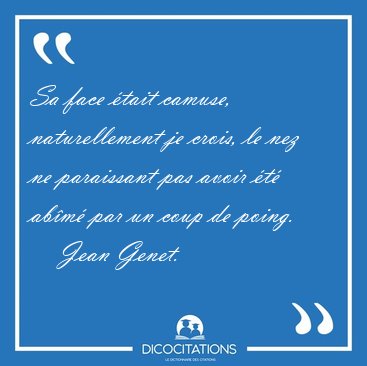 ![Sa face était camuse, naturellement je crois, le nez ne [...] - Jean Genet... Sa face était camuse, naturellement je crois, le nez ne [...] - Jean Genet...](/imagescitations/Sa_face_etait_camuse_naturellement_je_crois_le_nez_ne_-_Jean_Genet-70086.jpg)