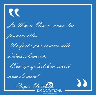 ![La Marie-Vison, vous, les jouvencelles Ne fait's pas comme [...] - Roger Varnay... La Marie-Vison, vous, les jouvencelles Ne fait's pas comme [...] - Roger Varnay...](/imagescitations/La_Marie-Vison_vous_les_jouvencelles_Ne_fait_s_pas_comme_-_Roger_Varnay-70283.jpg)