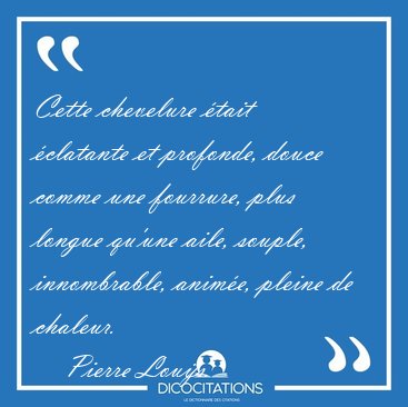 ![Cette chevelure était éclatante et profonde, douce comme une [...] - Pierre Louÿs... Cette chevelure était éclatante et profonde, douce comme une [...] - Pierre Louÿs...](/imagescitations/Cette_chevelure_etait_eclatante_et_profonde_douce_comme_une_-_Pierre_Louys-70794.jpg)