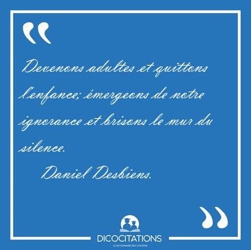 ![Devenons adultes et quittons l'enfance; émergeons de notre [...] - Daniel Desbiens... Devenons adultes et quittons l'enfance; émergeons de notre [...] - Daniel Desbiens...](/imagescitations/Devenons_adultes_et_quittons_l_enfance_emergeons_de_notre_-_Daniel_Desbiens-71029.jpg)