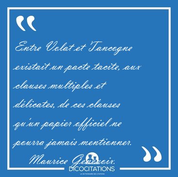 ![Entre Volat et Tancogne existait un pacte tacite, aux clauses [...] - Maurice Genevoix... Entre Volat et Tancogne existait un pacte tacite, aux clauses [...] - Maurice Genevoix...](/imagescitations/Entre_Volat_et_Tancogne_existait_un_pacte_tacite_aux_clauses_-_Maurice_Genevoix-71309.jpg)