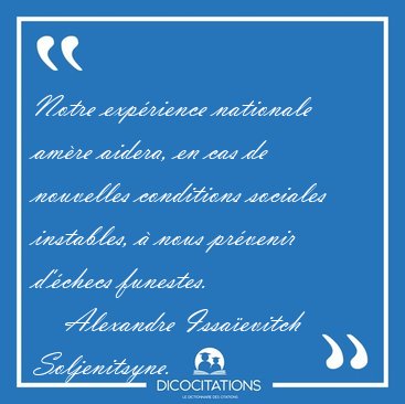 ![Notre expérience nationale amère aidera, en cas de nouvelles [...] - Alexandre Issaïevitch Soljenitsyne... Notre expérience nationale amère aidera, en cas de nouvelles [...] - Alexandre Issaïevitch Soljenitsyne...](/imagescitations/Notre_experience_nationale_amere_aidera_en_cas_de_nouvelles_-_Alexandre_Issaievitch_Soljenitsyne-71535.jpg)