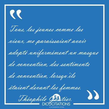 ![Tous, les jeunes comme les vieux, me paraissaient avoir adopté [...] - Théophile Gautier... Tous, les jeunes comme les vieux, me paraissaient avoir adopté [...] - Théophile Gautier...](/imagescitations/Tous_les_jeunes_comme_les_vieux_me_paraissaient_avoir_adopte_-_Theophile_Gautier-72328.jpg)