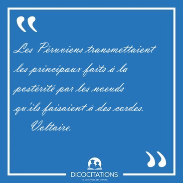Les Péruviens transmettaient les principaux faits à la postérité par les noeuds qu'ils faisaient à des cordes.