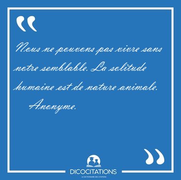 Nous ne pouvons pas vivre sans notre semblable. La solitude humaine est de nature animale.