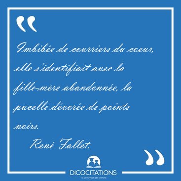 ![Imbibée de courriers du coeur, elle s'identifiait avec la [...] - René Fallet... Imbibée de courriers du coeur, elle s'identifiait avec la [...] - René Fallet...](/imagescitations/Imbibee_de_courriers_du_coeur_elle_s_identifiait_avec_la_-_Rene_Fallet-72629.jpg)