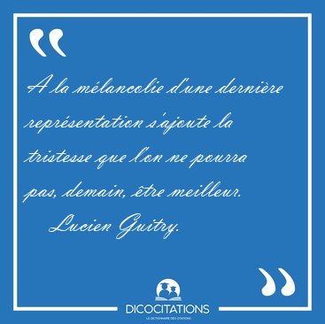 ![A la mélancolie d'une dernière représentation s'ajoute la [...] - Lucien Guitry... A la mélancolie d'une dernière représentation s'ajoute la [...] - Lucien Guitry...](/imagescitations/A_la_melancolie_d_une_derniere_representation_s_ajoute_la_-_Lucien_Guitry-7284.jpg)