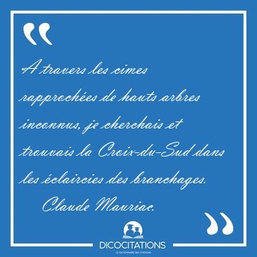 A travers les cimes rapprochées de hauts arbres inconnus, je cherchais et trouvais la Croix-du-Sud dans les éclaircies des branchages.