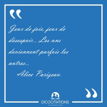 ![Jeux de joie, jeux de désespoir... Les uns deviennent parfois [...] - Alice Parizeau... Jeux de joie, jeux de désespoir... Les uns deviennent parfois [...] - Alice Parizeau...](/imagescitations/Jeux_de_joie_jeux_de_desespoir_Les_uns_deviennent_parfois_-_Alice_Parizeau-73188.jpg)