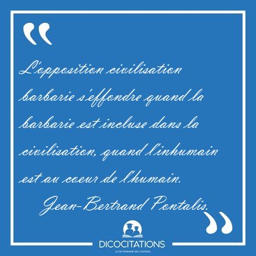 ![L'opposition civilisation barbarie s'effondre quand la barbarie [...] - Jean-Bertrand Pontalis... L'opposition civilisation barbarie s'effondre quand la barbarie [...] - Jean-Bertrand Pontalis...](/imagescitations/L_opposition_civilisation_barbarie_s_effondre_quand_la_barbarie_-_Jean-Bertrand_Pontalis-73521.jpg)