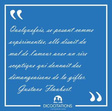 ![Quelquefois, se posant comme expérimentée, elle disait du mal de [...] - Gustave Flaubert... Quelquefois, se posant comme expérimentée, elle disait du mal de [...] - Gustave Flaubert...](/imagescitations/Quelquefois_se_posant_comme_experimentee_elle_disait_du_mal_de_-_Gustave_Flaubert-73708.jpg)