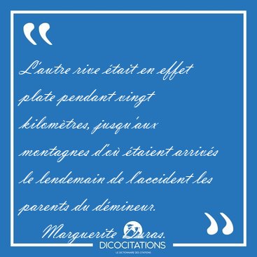 ![L'autre rive était en effet plate pendant vingt kilomètres, [...] - Marguerite Duras... L'autre rive était en effet plate pendant vingt kilomètres, [...] - Marguerite Duras...](/imagescitations/L_autre_rive_etait_en_effet_plate_pendant_vingt_kilometres_-_Marguerite_Duras-73795.jpg)
