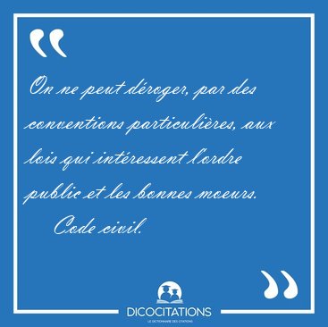 ![On ne peut déroger, par des conventions particulières, aux lois [...] - Code civil... On ne peut déroger, par des conventions particulières, aux lois [...] - Code civil...](/imagescitations/On_ne_peut_deroger_par_des_conventions_particulieres_aux_lois_-_Code_civil-74175.jpg)