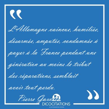 ![L'Allemagne vaincue, humiliée, désarmée, amputée, condamnée à [...] - Pierre Gaxotte... L'Allemagne vaincue, humiliée, désarmée, amputée, condamnée à [...] - Pierre Gaxotte...](/imagescitations/L_Allemagne_vaincue_humiliee_desarmee_amputee_condamnee_a_-_Pierre_Gaxotte-74244.jpg)