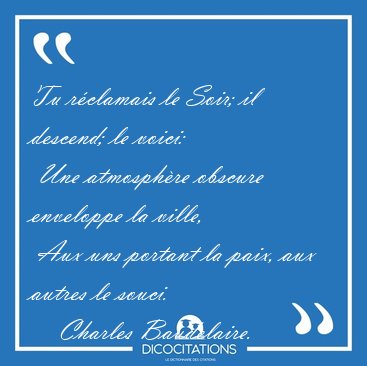 ![Tu réclamais le Soir; il descend; le voici: Une atmosphère [...] - Charles Baudelaire... Tu réclamais le Soir; il descend; le voici: Une atmosphère [...] - Charles Baudelaire...](/imagescitations/Tu_reclamais_le_Soir_il_descend_le_voici_Une_atmosphere_-_Charles_Baudelaire-74266.jpg)