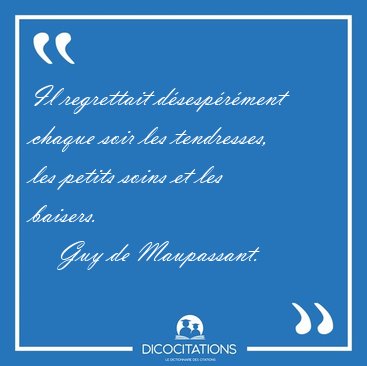 Il regrettait désespérément chaque soir les tendresses, les petits soins et les baisers.