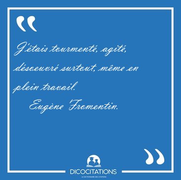 J'étais tourmenté, agité, désoeuvré surtout, même en plein travail.