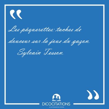 ![Les pâquerettes: taches de douceur sur la joue du [...] - Sylvain Tesson... Les pâquerettes: taches de douceur sur la joue du [...] - Sylvain Tesson...](/imagescitations/Les_paquerettes_taches_de_douceur_sur_la_joue_du_-_Sylvain_Tesson-74953.jpg)