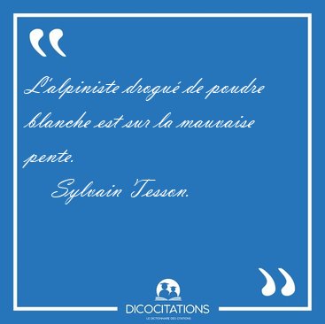![L'alpiniste drogué de poudre blanche est sur la mauvaise [...] - Sylvain Tesson... L'alpiniste drogué de poudre blanche est sur la mauvaise [...] - Sylvain Tesson...](/imagescitations/L_alpiniste_drogue_de_poudre_blanche_est_sur_la_mauvaise_-_Sylvain_Tesson-74977.jpg)