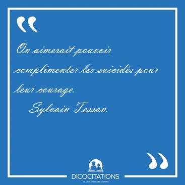 ![On aimerait pouvoir complimenter les suicidés pour leur [...] - Sylvain Tesson... On aimerait pouvoir complimenter les suicidés pour leur [...] - Sylvain Tesson...](/imagescitations/On_aimerait_pouvoir_complimenter_les_suicides_pour_leur_-_Sylvain_Tesson-75018.jpg)