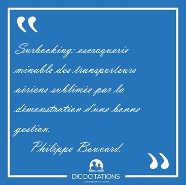 Recherche de citations : Surbooking: escroquerie / escroquerie minable / Surbooking: minable