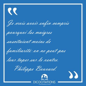 ![Je crois avoir enfin compris pourquoi les maigres suscitaient [...] - Philippe Bouvard... Je crois avoir enfin compris pourquoi les maigres suscitaient [...] - Philippe Bouvard...](/imagescitations/Je_crois_avoir_enfin_compris_pourquoi_les_maigres_suscitaient_-_Philippe_Bouvard-75887.jpg)