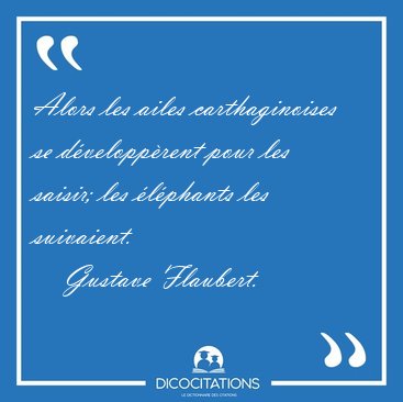 ![Alors les ailes carthaginoises se développèrent pour les saisir; [...] - Gustave Flaubert... Alors les ailes carthaginoises se développèrent pour les saisir; [...] - Gustave Flaubert...](/imagescitations/Alors_les_ailes_carthaginoises_se_developperent_pour_les_saisir_-_Gustave_Flaubert-76541.jpg)