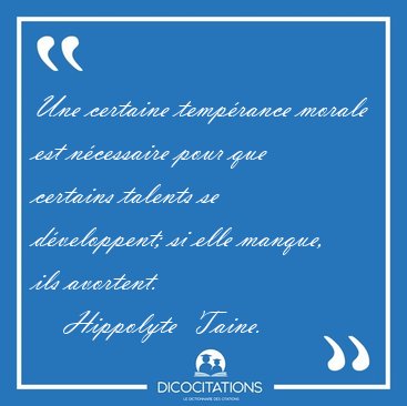 Une certaine tempérance morale est nécessaire pour que certains talents se développent; si elle manque, ils avortent.