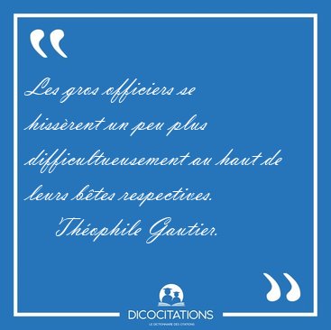 ![Les gros officiers se hissèrent un peu plus difficultueusement [...] - Théophile Gautier... Les gros officiers se hissèrent un peu plus difficultueusement [...] - Théophile Gautier...](/imagescitations/Les_gros_officiers_se_hisserent_un_peu_plus_difficultueusement_-_Theophile_Gautier-76833.jpg)