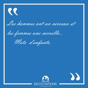 ![Les hommes ont un cerveau et les femmes une [...] - Mots d'enfants... Les hommes ont un cerveau et les femmes une [...] - Mots d'enfants...](/imagescitations/Les_hommes_ont_un_cerveau_et_les_femmes_une_-_Mots_d_enfants-76843.jpg)