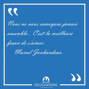 Nous ne nous ennuyons jamais ensemble... C'est la meilleure façon de s'aimer.
