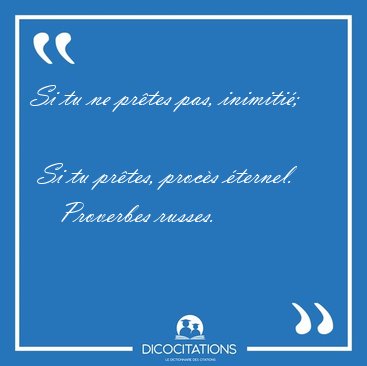 ![Si tu ne prêtes pas, inimitié; Si tu prêtes, procès [...] - Proverbes russes... Si tu ne prêtes pas, inimitié; Si tu prêtes, procès [...] - Proverbes russes...](/imagescitations/Si_tu_ne_pretes_pas_inimitie_Si_tu_pretes_proces_-_Proverbes_russes-77153.jpg)