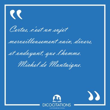 Certes, c'est un sujet merveilleusement vain, divers, et ondoyant, que l'homme.