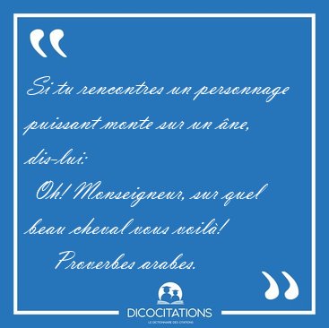![Si tu rencontres un personnage puissant monte sur un âne, [...] - Proverbes arabes... Si tu rencontres un personnage puissant monte sur un âne, [...] - Proverbes arabes...](/imagescitations/Si_tu_rencontres_un_personnage_puissant_monte_sur_un_ane_-_Proverbes_arabes-77660.jpg)