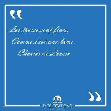 ![Les lèvres sont fines, Comme l'est une [...] - Charles de Leusse... Les lèvres sont fines, Comme l'est une [...] - Charles de Leusse...](/imagescitations/Les_levres_sont_fines_Comme_l_est_une_-_Charles_de_Leusse-77733.jpg)