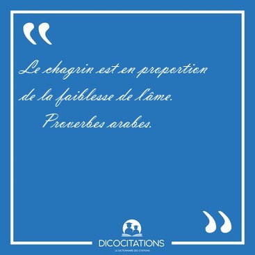![Le chagrin est en proportion de la faiblesse de [...] - Proverbes arabes... Le chagrin est en proportion de la faiblesse de [...] - Proverbes arabes...](/imagescitations/Le_chagrin_est_en_proportion_de_la_faiblesse_de_-_Proverbes_arabes-77817.jpg)
