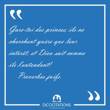 Gare-toi des princes; ils ne cherchent guère que leur intérêt, et Dieu sait comme ils l'entendent!