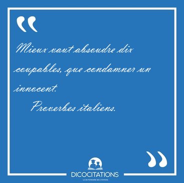 ![Mieux vaut absoudre dix coupables, que condamner un [...] - Proverbes italiens... Mieux vaut absoudre dix coupables, que condamner un [...] - Proverbes italiens...](/imagescitations/Mieux_vaut_absoudre_dix_coupables_que_condamner_un_-_Proverbes_italiens-79331.jpg)